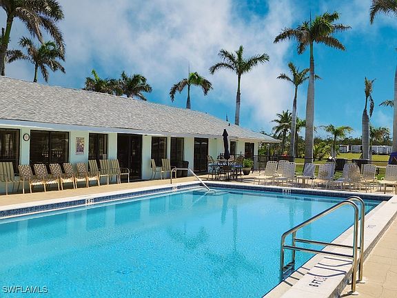 Welcome to Port Carlos Cove. Enjoy gorgeous waterfront views across the wide canal from your future home in Fort Myers Beach, FL. Enjoy the morning sunrises and shady afternoons from your deck overlooking the waterfront. Dock your boat behind your home and be in the Gulf in 15 minutes. It's just a 10-minute walk to white sand beaches and all the restaurants and shops. Fish from your dock or sit back and enjoy the dolphin. This beautiful waterfront lot is ready for your new construction. Public water/sewer and electric are at the property. Listing agent has complete details about the process and estimated costs of construction. We have included a photo of suggested future construction on the property. The first floor elevation is now required at approximately 11 feet above grade. That means extraordinary views and no flood insurance required. Lot dimensions will allow a home of approximately 1,500 square feet and dockage of your boat, up to 26 feet. Zoning allows stick built, modular or manufactured home construction. Community amenities include a pool, pickleball and club facilities, complete with a 16 acre storage yard, ready for boat or trailer storage. Just down the street is the Key West Express. Be in Key West by boat in 3 and 1/2 hours! Restaurants and shopping are all nearby. This is a 55+ community. Fees are $200 per month and that includes water, sewer, trash pickup, and seawall maintenance and replacement. Here is your chance to build your beach home at a price that beats anything available in the surrounding area.