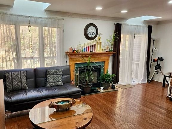 PETS ACCEPTED! Wow! Stunning 3 Bedrooms, 2.5 Baths Townhome in Desirable Skyview Heights - great location backing onto Woods with an impressive front view! This unit is Move in Ready. The house is clean, bright, spacious and has been lovingly maintained and tastefully updated. Hardwood flooring, New HVAC, New Dishwasher, Driveway sealed recently for winter. Open plan Living and Dining with Fireplace, Sliders to Deck, Skylights, Crown Molding then through to updated Kitchen with Stainless Steel Appliances and Granite Counters. Bonus Room on this level either Great Room or possible Third Bedroom. Upstairs - to huge Master and one additional Bedroom, each with modern en Suite and Walk in Closets. Enjoy the benefits of carefree living in a community that offers access to a sparkling salt water pool, clubhouse, and tennis/pickleball courts. This prime location places you close to shopping, dining, parks, & entertainment options. Commuters will appreciate the easy access to the train station, just a short 1.5-mile walk away. Townhome is in Parsippany with a Morris Plains mailing address. Highly rated Parsippany School District! EV Charging cable setup for fast charging available.