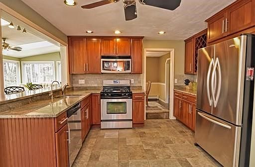 This is not your "cookie cutter" Colonial! If you're looking for something different in a wonderful established neighborhood, this is just what you've been waiting for! From the welcoming farmer's porch to the breathtaking natural setting you're sure to fall in love. The spacious floor plan offers plenty of space for everyday living & entertaining. Pride of ownership abounds w/the numerous upgrades & details throughout - renovated granite/stainless Kitchen w/adjoining Sun Room overlooking gorgeous private yard; expansive Great Room w/wet bar, 1/2 Bath & connecting 3-season Porch; beautiful tiled Bathrooms; gleaming Hardwood floors; finished Walk-Out Lower Level w/full Bath, Kitchenette & Bonus Room (makes a great Guest Suite); oversized 29x30 Garage w/3rd door to backyard; updated Roof, Heating Syst, Central AC, Irrigation; Expansion potential in Walk-up attic. Open House - Sat. 4/15 11AM-12:30PM. Come see what makes this home so special! **Seller will entertain offers $650K - $700K**