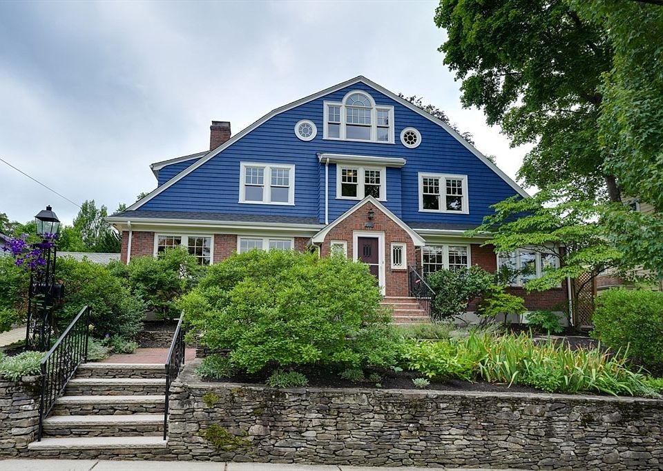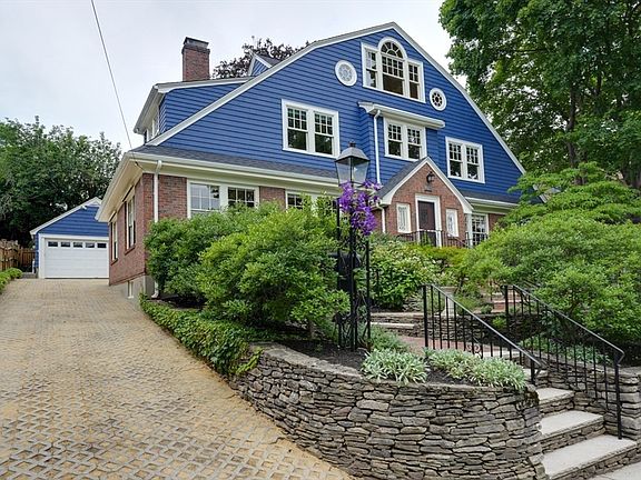 Palatial 5+ bed (2 primary suites) 4 bath, sits atop a hill with breathtaking skyline views of Boston. You're greeted at the curb by a gorgeous landscaped environmentally-friendly yard with stone retaining wall. Enter to see a grand living room with expansive fireplace, large dining room and magnificent renovated eat-in kitchen with Sub-Zero fridge, 2 sinks, 2 ovens, warming drawer and French doors opening to a stone patio. Also on this level is a bedroom with shower, an office and sunroom. Upstairs is one primary bed with ensuite and 2 closets, 2 more large bedrooms with walk- in closets, an office or nursery and a 3rd bath with tub. Our 3rd floor has the grand primary with cathedral ceiling high windows, skyline views on one side and treehouse on the other, bath with shower and walk in closet. Lower level has a family room, game room, laundry and storage rooms. Two car garage. Quiet street near reservoir, Payson Park, Grove St Park, Burbank Elementary, shopping, food & public trans.