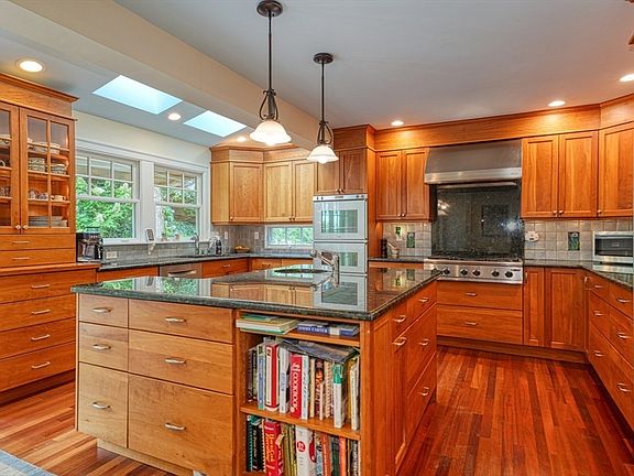 - Features: Skylight, Vaulted Ceiling(s), Closet/Cabinets - Custom Built, Flooring - Hardwood, Dining Area, Countertops - Stone/Granite/Solid, French Doors, Kitchen Island, Exterior Access, Open Floorplan, Recessed Lighting, Remodeled, Stainless Steel Appliances, Gas Stove, Lighting - Pendant