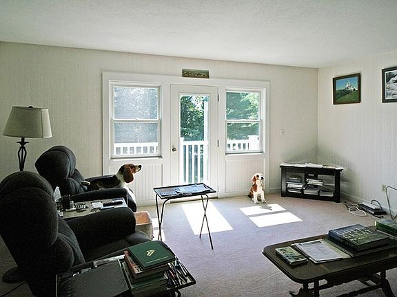 Desirable Country setting for peaceful, quiet living in the Leeds section of Northampton. Top floor Unit offers quiet repose and is an end unit, with outside views from the front and the side windows .. a charming outside balcony is a great leisure spot. Inside features a very large living & dining room, 2 bedrooms that are quite large, an efficient kitchen set-up, full bath ( half bath in larger bedroom ) and .. not often found .. but much appreciated laundry room .. IN .. your unit ! There are storage units in the basement and the complex offers privacy in a wooded enclave. .