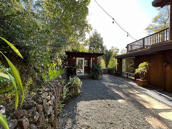 Available October 10th! Soulful living, gorgeous views and total wooded privacy on a full half acre in the heart of Marin. Entertainer's delight with fully upgraded gourmet kitchen and a RAIS high efficiency Scandinavian wood-burning stove. En-suite bedroom/bathroom downstairs and giant vaulted ceilings in the Treehouse bedroom upstairs. A charming third bedroom/office nook with under-the-stairs-storage and custom sliding barn doors. Steps from the front door is a separate Craftsman Cabin - a pine-walled doers domain that doubles as an office (or guest quarters). Be inspired by the amazing views from every room and the sunny 500 sf deck. Unwind in your hot tub surrounded the nirvana of nature. Ready for your creative touch in this warm, welcoming home. Owners pay for landscaping and has a strong preference for a 1 year lease. Marin beckons!