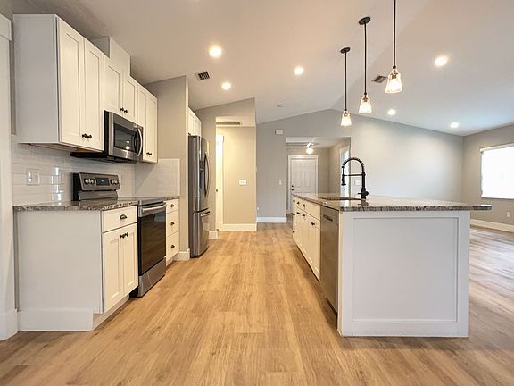 Move-In Ready Pool Home! This beautifully maintained pool home is ready for you! The spacious split floor plan offers plenty of living space with vinyl plank flooring throughoutNO carpet! Features you'll love: Eat-in kitchen overlooking the patio and pool, Updated appliances with new backsplash, Bathroom with direct pool access, Private backyard oasis with tall hedges for seclusion, Sparkling pool with pool care included. Washer and dryer included