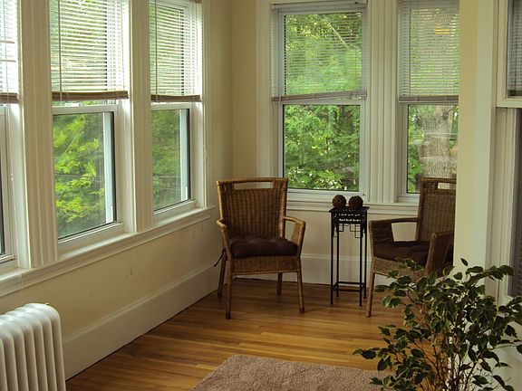 Gorgeous and sunny second floor, top floor two bedroom condo in a quiet neighborhood in Dedham. This is a floor through unit with a private deck off of the kitchen. It features hard wood floors throughout, tons of windows, and comes with two parking spots. Also tons of easy street parking. The kitchen has stainless appliances and laundry is located in the unit. Kitchen is in the process of being painted.