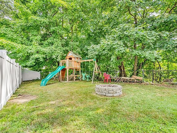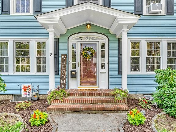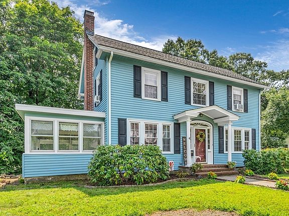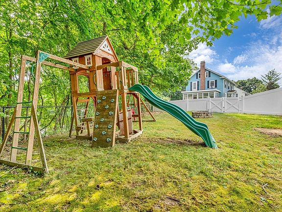 This delightful 4-5 bedroom vintage colonial home is filled with sunshine, character, and charm. The front-to-back living room features a cozy fireplace and leads to the glass filled, newly carpeted sunroom that adds a bright, versatile space. Hardwood floors are throughout most of the home. The inviting dining room includes a built-in china cabinet, perfect for entertaining. The kitchen offers a pantry and a convenient mudroom off the back of the house. Upstairs, you'll find four spacious bedrooms and a full bath, with the potential for a fifth bedroom or bonus room in the walk-up attic, which also provides extra storage space. The unfinished, walk-out basement offers storage and space for expansion. The property boasts an oversized deck, perfect for outdoor gatherings, and a fenced-in playground/firepit area on the side yard. A one-car garage at the rear of the property accommodates a small car or motorcycle. Ages of systems: Roof 2015; Weil-McLain boiler 2013; and H2O tank 2023.