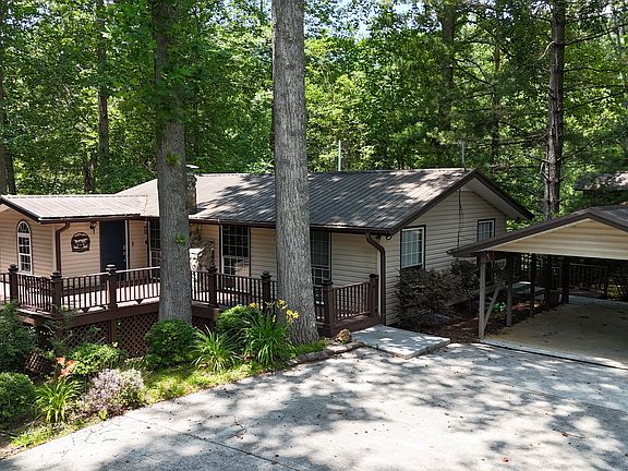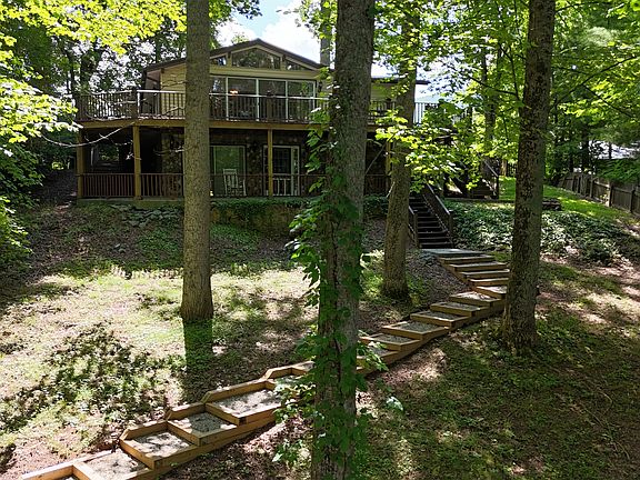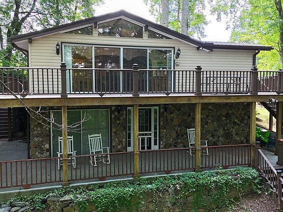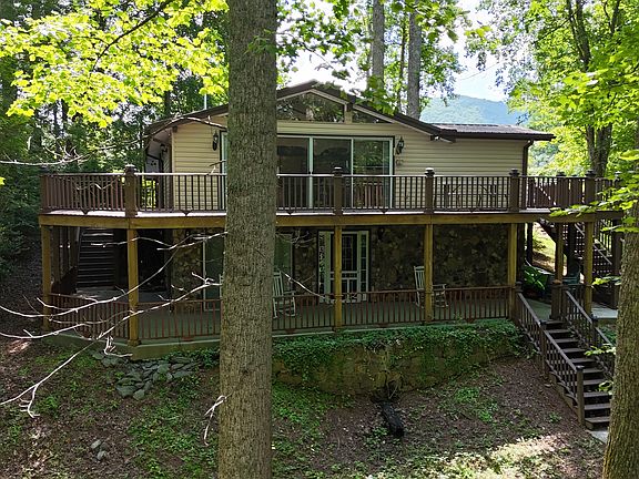 Come visit this charming fully furnished lakefront property on the shores of Lake Santeetlah, offering stunning mountain and water views! The home boasts with a spacious open-concept design, featuring a floor-to-ceiling stone wood-burning fireplace, rich oak floors, and large windows that flood the space with natural light and provide breathtaking views of the lake. The kitchen is open with ample cabinetry, making it perfect for entertaining. The master bedroom is located on the main level, while the additional bedrooms provide comfortable accommodations for guests or family. Downstairs is very spacious with a 3rd bedroom, bathroom, entertainment space and extra sleeping quarters. Outdoor living is a highlight of this property, with wraparound decks, a private dock, and direct lake access, making it ideal for boating, fishing, and relaxing in a peaceful mountain setting. Located in the serene Forest Lakes community, this home offers a perfect blend of privacy and convenience, with easy access to the town of Robbinsville and nearby outdoor recreational opportunities in the Great Smoky Mountains.