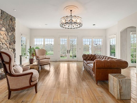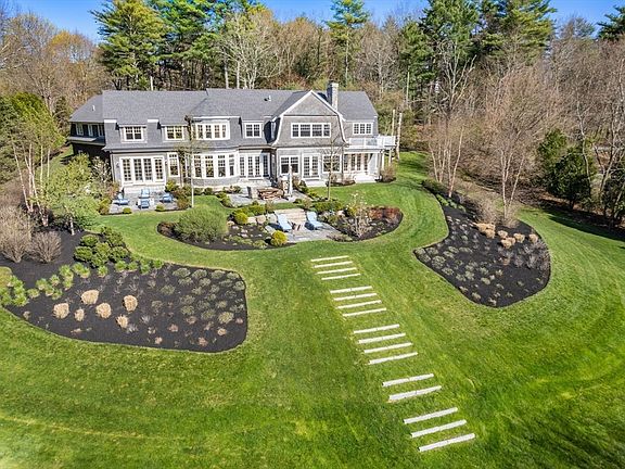 Custom-built shingle style home adjacent to Sedgemeadow Conservation Land. Step in to an impressive foyer boasting soaring ceilings, white walnut and travertine flooring and ample natural light. Every room in this five-bedroom home is thoughtfully oriented to capture breathtaking views of its pastoral setting. Entertain in the living room with wood-burning fireplace and French door access to the patio. The gourmet kitchen features a Delaubrac range, stainless appliances, granite countertops, and brick backsplash. The luxurious primary suite includes a private balcony, wood-burning fireplace, and his and her walk-in closets. Outside, professionally designed landscaping enhances the beauty of the home with bluestone patios and lush plantings. Enjoy sunset views and walking/running trail access from the backyard. With five ensuite bedrooms, a three-car garage, private well for irrigation, and 1.57 acres of land, this property offers both luxury and functionality.