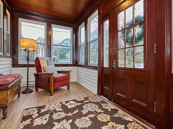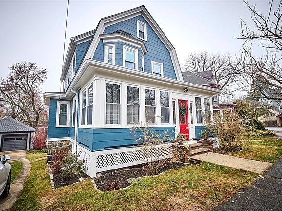 Lovely 1910 Gambrel-style home in the Olmsted Historic District of seaside Swampscott. Features a welcoming heated porch, original molding, stained glass window, built-in china cabinet, wood floors, fireplace with gas insert. Three bedrooms, 1.5 baths, bonus walk-up insulated attic, two-car garage. The abundant charm and character have been preserved with tasteful updates in the last 6 years: HVAC, plumbing, electrical, roof, gutters, kitchen w/ quartz counters, appliances, baths, interior/exterior paint, EV charger, garage doors, deck, brick patio. 10 minute walk to Commuter Rail. Less than 2 miles to Phillips, Eisman's or Lynn Beach. A truly wonderful space!