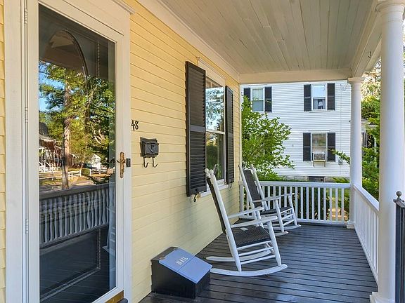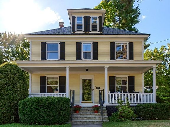 This lovely center-entrance antique colonial has been well cared for and updated. The home has approximately 1,800 sq. ft. of living area and a one-car detached garage. The gleaming wood floors are enhanced by large windows. The living room has a bay window and gas fireplace. The dining room has a built in china cabinet, chair rail and pass through to the kitchen. The kitchen has cherry cabinets, a Dynasty gas stove, a wall oven and granite counters. A sunroom addition to the kitchen leads to the 12x17 ft. granite-walled patio, a fishpond, and steps to a private backyard. Upstairs there are 4 bedrooms, full bath and a walk-up attic for storage or future expansion. This home is near Vinal Square's restaurants and shops, MacKay Library and Freeman Lakes's playground, beach, tennis and basketball courts. All of this is within 1 mile of Rte. 3 and has easy access to bus and train service.