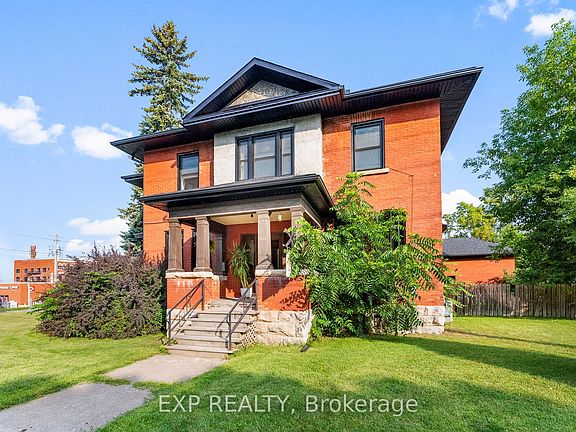 Step into timeless charm at 48 Hall Avenue in Renfrew! This stunning 2-storey brick Century home blends historic character with modern updates, offering endless possibilities for its next owner. Showcasing original wood millwork, solid wood interior doors, and a grand staircase, this spacious 5-bedroom, 3-bathroom home is filled with warmth and character. Zoned for commercial use with residential permissions, this versatile property is currently used as a primary residence and home-based business, making it an ideal choice for entrepreneurs, professionals, or investors seeking a prime in-town location that offers a variety of future opportunities. Inside, you'll find a large, welcoming entryway, a private balcony off both the family room and the primary bedroom, and functional spaces including a generous mudroom and walk-in pantry. Recent updates include all new windows, some exterior doors, roof (2021), furnace, hot water tank, soffit, fascia, and eavestroughs showing true pride of ownership. The fenced side yard offers privacy, while the rear family entry and large parking area add to the property's convenience. Located steps from historic downtown Renfrew, shops, schools, parks, and recreation, this unique property is brimming with potential.