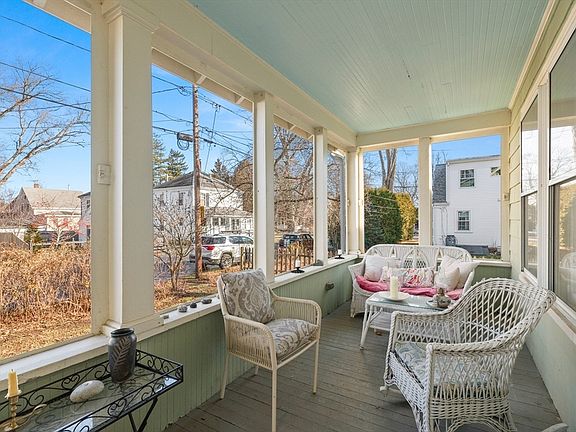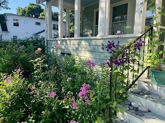 Light filled, delightful 3 Bd. 1 Ba. Colonial in quiet downtown S. Hamilton neighborhood, conveniently located a few blocks from the commuter rail, shops, and parks. Highly rated Hamilton-Wenham school system. Generous period detail including hardwood floors, crown molding and built-in china cabinet. Cherry cabinets in kitchen. New refrigerator and stove. Brightly lit sunroom off of living room. Sweet front porch. Generous detached garage with added shelving for ample dry storage. Basement currently used as artist studio with custom-made work table and shelving throughout. Colorful perennial gardens with raised vegetable beds. Perfect for young families or downsizing.