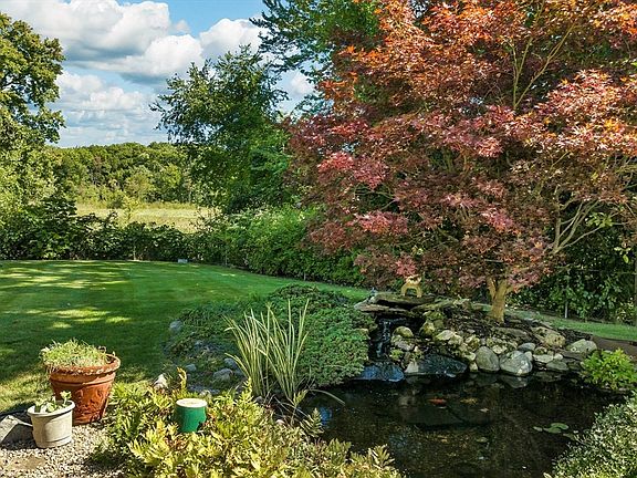 This Charming 4-bedroom,1.5 bath home with idyllic FARMER'S PORCH and oversized 2 Car Garage has Multi-Generational Living Potential with 2 Entry Doors and 2 Driveways! The Backyard is a Private OASIS, complete with a Koi pond & Lush Gardens that abuts protected wetlands! Some of the features of this home are: HARDWOOD floors, a Huge Great Room (480+ sq ft), Fantastic Sunroom overlooking the gorgeous grounds, Formal Dining and Living Rooms & first floor Laundry Room. The lower level office/library/playroom is perfect with its built-in shelving, new carpet & insulation. This home isn’t just beautiful; it’s smart, too, with a newer roof and high-efficiency heating & AC, thanks to the “Mass Save” program. Start your day watching the SUNRISE in the Sunroom and end it soaking in the SUNSET on the swing of your farmer's porch. Quick access to COMMUTER highways, UMASS Lowell, Dracut High, FREE MassEducate at MCC, and Shaw Dairy Farm! Don't Miss it!!!