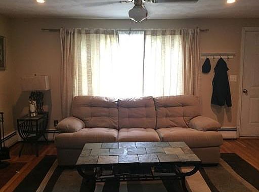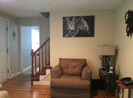 Wonderfully sunny cape in a very quiet family friendly neighborhood. Easy access to highways to Boston and North. Hardwood floors in the living room, dining room and extended eating area in kitchen, kitchen itself and both baths are tile and wall to wall carpeting in the bedrooms on second floor (however, they cover hardwood floors if that is what you prefer). Ceiling fans in the living room and formal dining room. 1/2 bath on the first floor, and full bath upstairs. Newer roof and hot water heater. This charming home boasts a fully finished basement (an extra 768 sq ft not shown in living area) with 3 rooms currently used as a drafting room, man cave and office area, as well as a closeted area for washer and dryer with tile floor throughout and just walk out the door to private back yard.
