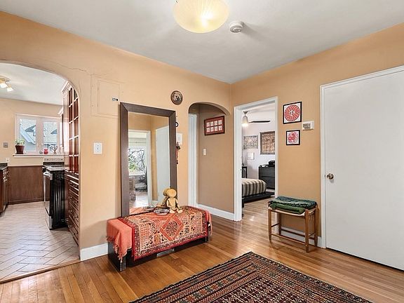 Enjoy tree top views and watch the sunset from the living room of this bright and spacious two bedroom condominium. This lovely unit features hardwood floors, a large living room that can easily accommodate a dining area, large bedrooms, a well designed kitchen with granite countertop, island, built in pantry and stainless steel appliances, in unit laundry, archways and built-ins that add to the character and a garage parking space. Great location, convenient to the city, beautiful Farlow Park nearby, close to shopping, and public transportation.