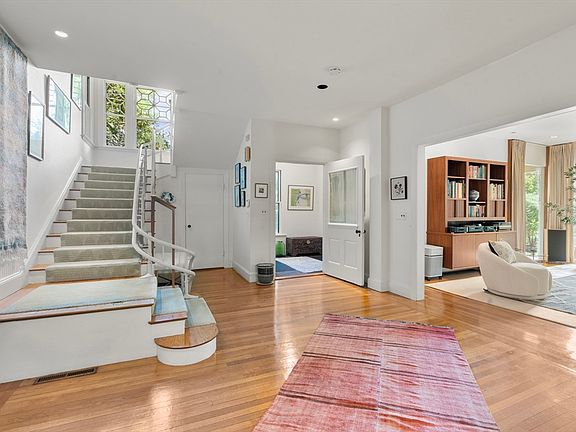 Sited far back from Brattle Street on nearly 1/2 an acre of landscaped grounds, this grandly scaled residence was constructed during the Gilded Age and later enhanced in the 1950s by a sharp mid-century modern addition. The expansive first floor is ideal for indoor/outdoor entertaining, enveloped by a curved wraparound porch surveying the back gardens. On the 2nd floor, the tranquil primary suite offers an elegant dressing room with custom closets & cabinetry, and a 4-piece en-suite bath with a double vanity and corner soaking tub. There are 2 additional large bedrooms, an office, study, and enclosed porch on this level. The top floor houses 3 more bedrooms, a hall bathroom, another study, cedar walk-in closet, and generous attic storage. The unfinished lower level has expansion potential with high ceilings, huge storage & utility areas, an exercise room, and bulkhead exterior access. Located less than a mile to Harvard Square, Huron Village, Fresh Pond, and multiple schools.
