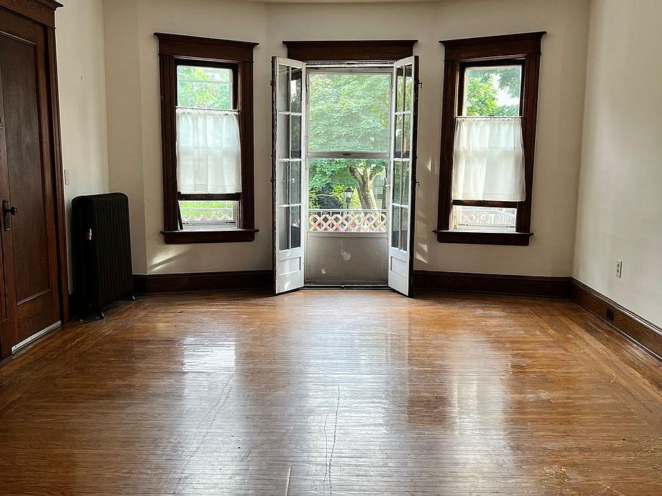 Front porchNatural lightLarge bedroomsToasty steam radiatorsBreakfast barOriginal hardwood floors