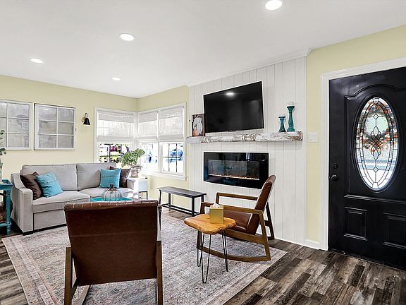 Don't miss your chance to own this adorable gem in Bargersville, where modern updates meet small-town charm! Just steps away from the Bargersville Farmers Market, local shops, and dining, you'll love the walkable lifestyle this location offers. Inside, the home shines with a beautifully remodeled kitchen featuring a granite island, new appliances (stove, microwave, disposal), updated lighting with dimmers, and durable PVC plank flooring. The open living and dining areas feel bright and inviting, enhanced by recessed lighting and fresh, neutral paint throughout. An electric fireplace adds cozy ambiance. Both bathrooms have been refreshed, including updated fixtures and new toilets, while a new washer and dryer (just 1 year old) make laundry a breeze. Mechanical peace of mind comes with a newer sump pump, on-demand hot water heater, and HVAC serviced twice a year by Beeson Electrical. Step outside to enjoy not one but two welcoming porches, plus a deck with pergola perfect for entertaining. The concrete driveway (only 1 year old) offers covered parking for two cars, & a shed is included for extra storage.