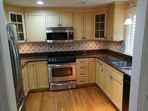Sunny, spacious, corner townhouse, approximately 1,359 square feet (according to the Weston public records), 2 beds and 2 baths including 2 parking spots (one in carport, one in signed space). Hardwood flood and crown molding throughout! Good size kitchen with black granite counter tops, stainless steel appliances which opens up to the dinning room with sliders overlooking the private blue stone patio and forest. Quite neighborhood, easily access to all routes, RT 20, 30, I-90, I-95, 128. Great school system.