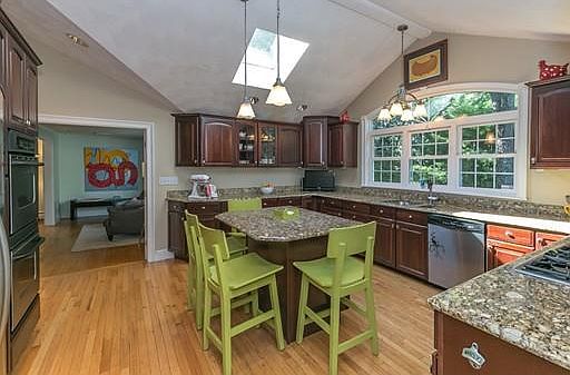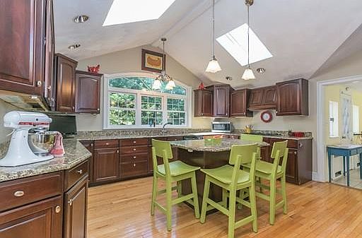 - Kit Dscrp: Window(s) - Picture, Flooring - Hardwood, Countertops - Stone/Granite/Solid, Skylight, Ceiling - Cathedral, Kitchen Island, Stainless Steel Appliances, Open Floor Plan, Gas Stove