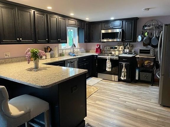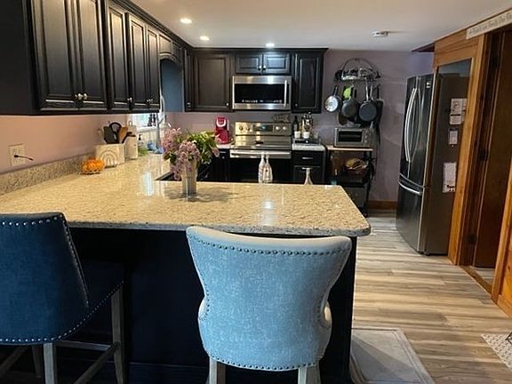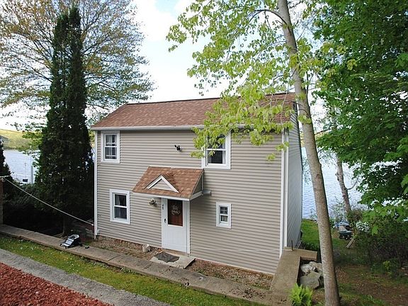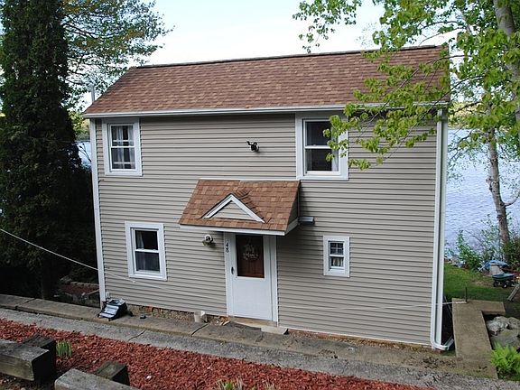Waterfront home on Burncoat Pond with dock and easy lake access. Year round living and ready to move in and enjoy the summer on the water. Home was renovated in 2019 with new Kitchen, flooring, sun room, and more. Stainless appliances including Stove, Refrigerator, Microwave, washer and dryer. Note 3 zone heat with pellet stove that supplied great heat during cold months. 200 amp electric service. Sun room with great visibility of pond gets lots of sun and is a warm friendly place to relax. 3rd to last house on dead end road before Audubon Sanctuary which is protected land.