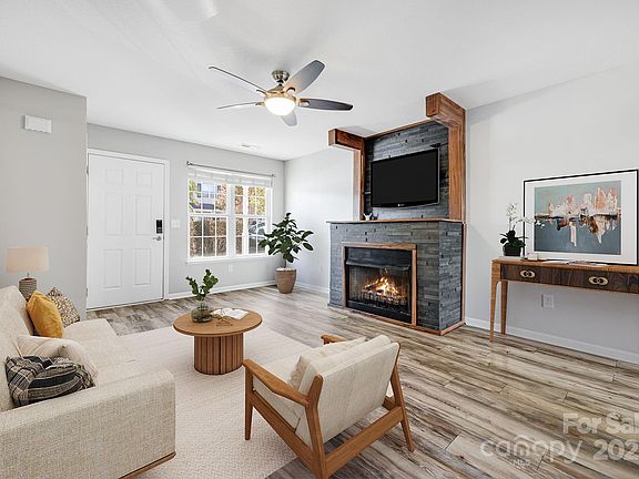 Nestled in desirable Stafford Hills, this end-unit features an attached garage and a smart and spacious floor plan with upgrades throughout, including a EUFY lock and security system, ECOBEE climate controls with motion sensor activation, and kitchen Bluetooth lighting and speakers. Cozy fireplace in living room, light and bright kitchen with stainless appliances, dining area, laundry room and half-bath on main level. Upstairs you'll find the primary bedroom suite with private bath, two guest bedrooms and guest bath. Enjoy excellent outdoor living with the private and fenced back patio, featuring a Trex-style pad, solar lights, and a custom bar wired for music and more. Low HOA fee covers exterior maintenance and lawn care. Minutes to shopping and dining and an easy commute to Asheville or Hendersonville - an ideal location!