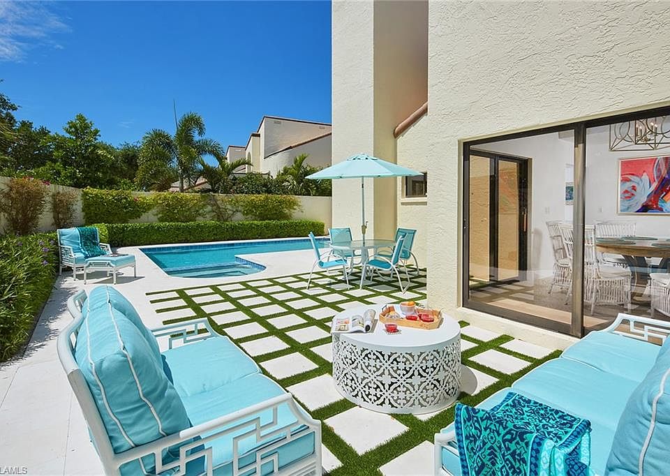 This spacious two-story villa end unit in the Las Brisas community of Pelican Bay features a generously appointed main living space, three bedrooms, three-and-one-half-baths and an inviting pool area great for entertaining. The living room and newly remodeled kitchen open up to the sunny southwestern exposed pool and private lanai featuring a newly finished pool area, multiple seating areas and lush landscaping. Located only a short bike ride or walk to the beach tram and the Pelican Bay Golf Club, this villa offers the best of Florida living.