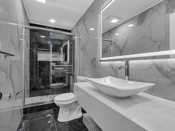 Off-street parkingEfficient year-round comfortMarble-style tileSpacious bedroomsBright kitchenSleek vanityFresh neutral color palette