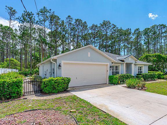 Welcome home to the popular Quail Hollow subdivision of Palm Coast! You will love this beautiful and comfortable 3 bedroom, 2 bath concrete block home with a new roof in 2020. Upon entering, you will be greeted with two flex spaces to make your own, both with plantation shutters.. A dining room to the left and an office, den or playroom to the right. Split floor plan includes a spacious master bedroom and walk-in closets with built-ins. No carpeting in this home! And after you enjoy your less than 15 minute drive home from gorgeous Flagler Beach, you'll be simply charmed by your own back yard's park-like setting. Enjoy your morning coffee on the screened-in lanai. Plenty of room to grow your garden or add a pool or spa. Enjoy the no thru-traffic of this cul-de-sac street, lined with many beautiful new homes. Convenient to shopping, dining, parks, Rt.1, I-95 & more. 30 minutes south to Daytona Beach and 30 minutes north to St. Augustine.