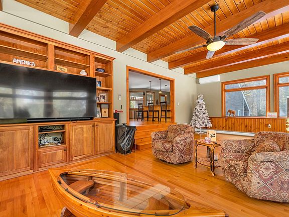 Your Dream Home Awaits! In Town but Out of Town – Discover the perfect blend of privacy and convenience on this breathtaking 1.5-acre property! A spacious paved driveway leads you to a welcoming large farmer's porch, ideal for enjoying morning coffee or evening relaxation. This home features 2 master suites—The Loon Suite is located on 2nd floor and the Bear Suite is located on 1st floor providing comfort and flexibility for everyone. The themed lake suite upstairs offers generous space for guests, complete with a bunk room, private sitting area, and bathroom. Modern Conveniences: With laundry facilities on both levels and premium stainless steel Jenn-Air appliances and granite kitchen. Experience the luxury of radiant heat in the upstairs bathrooms and kitchen for ultimate comfort. Work and Play in an inviting office area is equipped with a state-of-the-art Wi-Fi system serviced by Orbi and Fidium fiber internet, ensuring productivity. The oversized great room, adorned with endless windows, fills your home with natural light. Entertainment Ready: Enjoy movie nights on the 90" projector screen in the master suite, and unwind in the luxurious steam shower or soak in the tub after a long day. Spacious Garage 28.3x30.3 makes The 3-car garage offers ample space for vehicles and storage, plus you’re just moments away from snowmobile trails and all the fun activities the White Mountains have to offer. Owner is a Licensed NH & MA Real Estate Broker