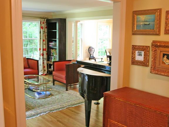 Desirable in-town living! Stylish colonial features 5 bedrooms, 5.5 baths, 3-car heated garage & stone patio overlooking lush plantings. In-town yet private on 1 acre w/room for a pool. Walk to town, train & Mead park! Gorgeous chef?s kitchen, family room w/cath ceilings, built-ins & fireplace wall of travertine & marble. Master suite w/office, yoga/music room & spa bath w/steam, whirlpool, sauna & an abundance of natural light. Finished playroom w/full bath. Generator, reverse osmosis filtration, cedar closet, central vac & security system. So close to town but set back from the road with privacy and every amenity imaginable!