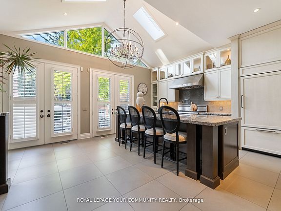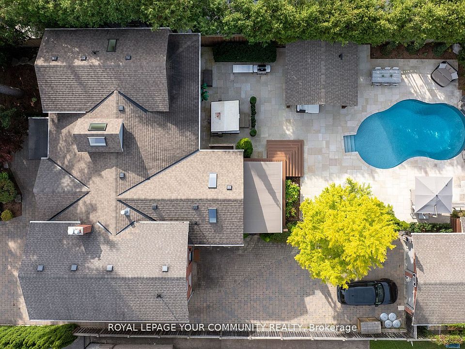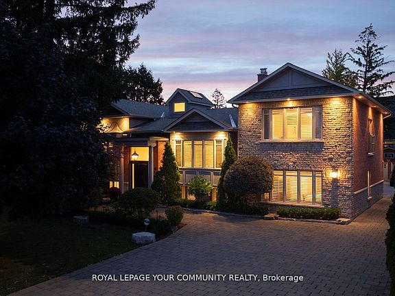 Discover unparalleled elegance and craftsmanship in this bespoke boutique residence on a rare 80-by-152 ft lot located in coveted North Richvale. Step through a grand custom wood door into an awe-inspiring entryway featuring elevated ceilings and exquisite wood panelling that exudes classic sophistication and sets the tone for the luxurious living spaces beyond. The open entry flows seamlessly into the heart of this custom home, where designer light fixtures, skylights, and soaring cathedral ceilings create a bright and inviting ambiance. Every inch of this home is crafted with meticulous attention to detail from custom-sized doors, crown mouldings, hardwood floors, and smart lighting control to a stunning double-sided fireplace each element adds an element of refined luxury throughout. The gourmet chefs kitchen is a marvel of design and functionality, featuring top-tier integrated appliances, a tailored grand kitchen island, spacious custom cabinetry, skylights, and an elegant designer chandelier. It overlooks an award-winning landscaped backyard and includes a pantry, a large breakfast area adjacent to an elegant dining room, and a bright family room with large windows and cushioned window seats. The primary suite is a private sanctuary showcasing soaring cathedral ceilings, rich wood panelling, and an elegant designer light fixture a private Juliette balcony bathes the room in natural sunlight, while the luxurious 6-piece spa-inspired ensuite bath offers ultimate privacy and serenity. Descend into the expansive lower level, where a large recreational area with high lookout windows and a projector screen invites cozy movie nights and lively gatherings. Outdoors, experience a private retreat framed by a custom cabana, shimmering pool, hot tub with automated cover, motorized patio awning, basketball hoop, and multiple zones for dining, lounging, and entertaining creating an exceptional outdoor oasis. Dont miss this luxurious opportunity!