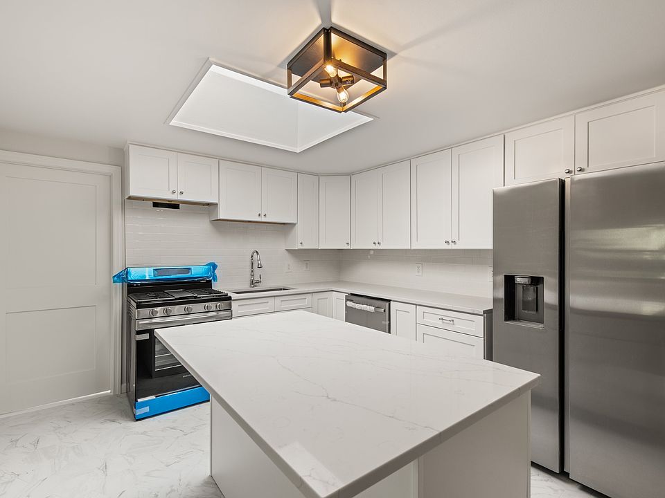 Available November 1, completely renovated in 2025, be the first to lease this coveted Riverside location offering a gracious five-bedroom raised ranch with deck. Walking distance to Metro North train station. Near schools, shops, parks, and Town beach. Ideally sited on a cul de sac in a wonderful, established neighborhood. Light-filled, 3260 sq. ft. interior boasts rich hardwood floors in an expansive living room adjacent dining room with new molding; new appliances in kitchen, inviting sunroom with access to deck/yard. Large family room/rec room and two office/dens perfect for those who work from home. Four full baths with stunning finishes. Property includes a detached two-car garage and loft.