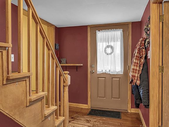 Set back away from road this farmhouse has a 2 car garage detached, and a great yard. From the front porch entering the home the first floor office to the right and dining room (being used as first floor bedroom currently) with French doors to the left greet you. As you walk further down the hallway the bright kitchen awaits, attached to the large Living Area, and another eating area or second office. The sliding doors off the living area lead out to a great sized Trex Deck with vinyl railings and glass panels, perfect for morning coffee and looking at the nature surrounding you. A full bath and separate laundry room complete the first level. Upstairs you will find 3 bedrooms and a full bath, with a amazing bathtub. The basement has a workshop area, and a surplus amount of storage ! Your new home awaits you and your personal touches!