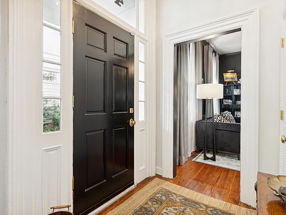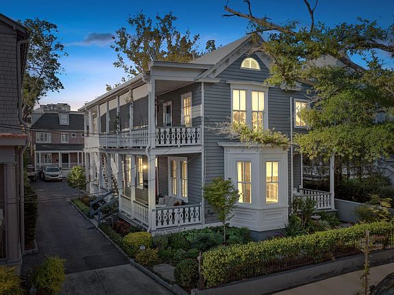With a prime location in downtown Charleston's Harleston Village, this expertly preserved historic home places you within walking distance of the city's best restaurants, shops and parks. A full front porch welcomes you into the first floor unit, which features a stylishly appointed interior filled with curated finishes, abundant natural light, and elevated design elements. Original heart pine floors, high ceilings, large windows and fireplaces evoke the home's history, while modern touches such as Circa light fixtures, bold paint, stone counters, and more lend a more contemporary feel. The formal living room is a great place to gather and opens to the eat-in kitchen, which has been completely renovated with granite counters, custom cabinets, a large center island and brass hardwarefrom Classic Brass and Emteck. The sunlit primary bedroom suite features an original fireplace and access to a private covered porch, along with an en suite bathroom. There is also a guest suite within the home. There is great connectivity to the outdoor living spaces which include a garden with landscape lighting and an expansive covered piazza (approx. 525 sq.ft) that runs the length of the home, providing ample space for dining al fresco or simply relaxing. The home also has one off-street parking space. The current owners recently replaced the HVAC system, including new ductwork and new insulation underneath the home. Other recent updates include painting of the entire exterior and a renovated powder room.