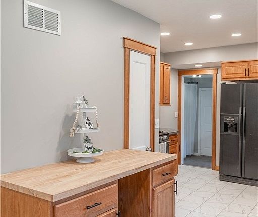 Welcome to this beautifully remodeled 2-bedroom, 1-bath ranch in Painesville Township, located in the desirable Riverside School District. This move-in ready home features an eat-in kitchen with pantry, tile flooring, concrete countertops, tile backsplash, additional butcher block counter space, and all appliances included. The living room offers a wood accent wall, wood-burning fireplace, and new luxury vinyl tile flooring. Both bedrooms have brand-new carpeting. The full bathroom has been fully updated with a tile surround, luxury vinyl tile flooring, concrete countertops, and all new fixtures. The laundry room includes a washer and dryer, new tile flooring, and updated utility sinks. Enjoy outdoor living on the covered wood deck overlooking a spacious, fully fenced-in backyard. Additional updates include a newer A/C and furnace, new electrical panel (2025), all new fixtures, brand new insulated garage door with Genie garage door opener (2025), fresh interior and exterior paint, updated landscaping, new wooden front deck and a striking new stone exterior. A fantastic opportunity for a turnkey home in a convenient location! One year home warranty provided by the Seller for peace of mind! Bring offers!