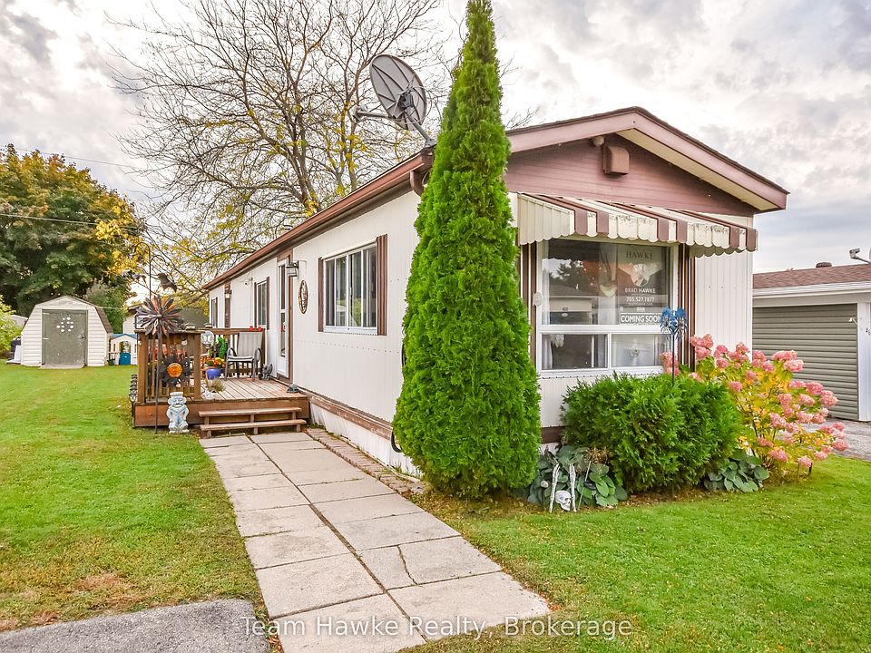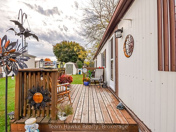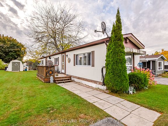 A great opportunity to downsize your home and move into this clean and comfortable mobile home in Midland. Located in Smith's Camp, a community on the shores of Little Lake, this two bedroom home has an open concept layout with updated flooring throughout. Everything is on one level. Easy access to walk the trails of Little Lake Park, access to public transportation at the entrance, and a walking trail to Walmart. This location features plenty of outdoor living space as well, plus two storage sheds. Gas heat. Don't miss out.