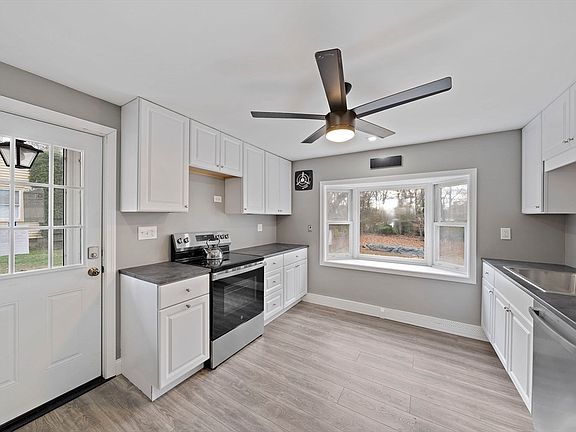 Perfect starter home, downsize or condo alternative - on an oversized 1/3 of an acre of land! Amazing Summer Heights neighborhood with nothing to do but move in; brand new kitchen with white cabinets, stainless steel appliances, laminate floor and open floor plan to the living room. New custom bathroom with tiled shower and granite topped vanity. Three comfortable sized bedrooms with plenty of closet space. Utility room has a stackable washer/dryer, storage space and a newer Navian hot water on demand system for heat/hot water. The enclosed 9x18 front porch is sunny and the perfect spot for extra living space. Plus no maintenance vinyl siding, enclosed side entrance, two storage sheds and driveway space. Everything you need is an easy commute - five minutes to Canton Junction Rt. 95 and 12 min to Norwood commuter T. Showings begin Thursday with open houses Saturday and Sunday.