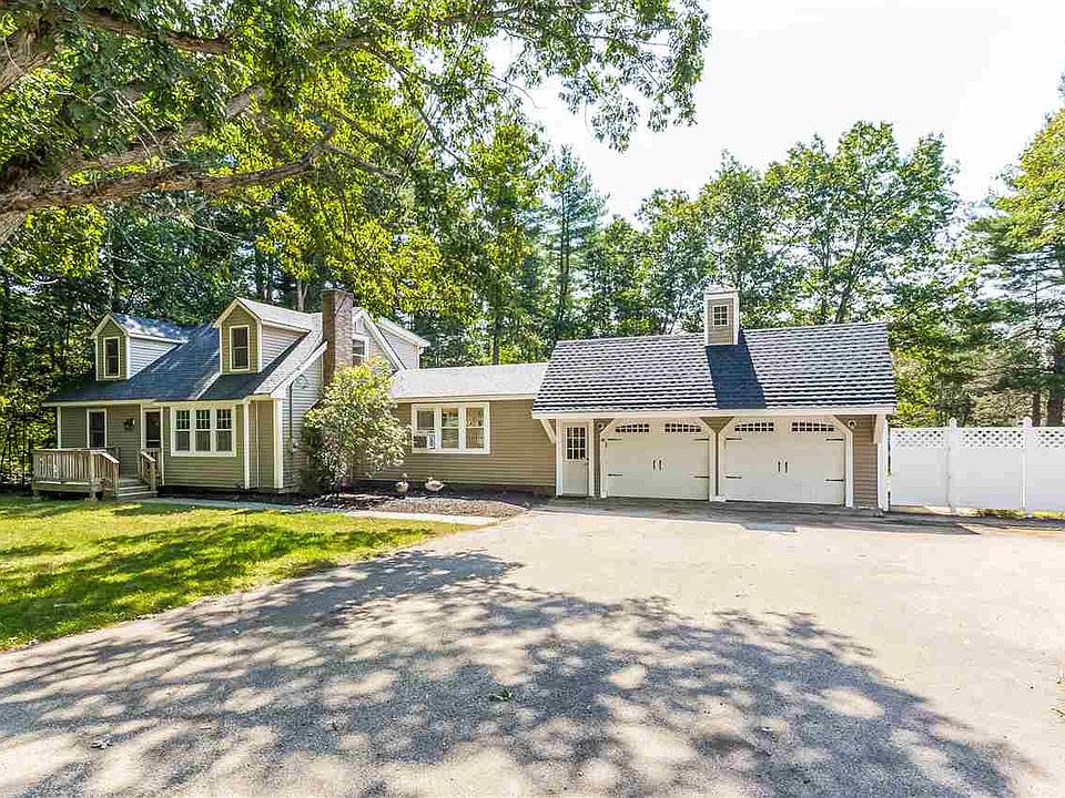 Set on a great level corner lot is this charming traditional Cape style home. Entering to the living room, gleaming wood floors and a fireplace welcome you to an inviting space. The kitchen, with island, opens to the eating area and family room. A LARGE BEDROOM and 3/4 bath complete this MAIN FLOOR. Two large bedrooms and a full bath are located on the second floor. The over-sized deck opens to the above ground pool and fenced backyard. The driveway has two entrances, additional parking and leads to the attached two car garage. Located conveniently close to Rte 125 and 111, this offers a flexible location for commuting, schools and shopping.