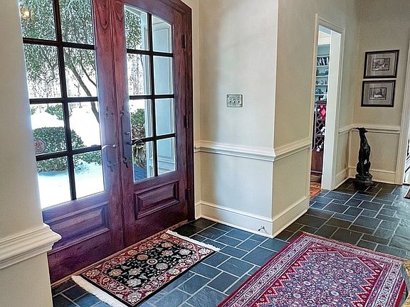 Lake view on 3+ acres - 4 BR, 3.5-bath home offers refined living w/ lake views. A slate-floored foyer opens to beautifully appointed formal living & dining rooms, the family room features gas logs, perfect for relaxed gatherings. A light-filled sunroom overlooks the lake. The gourmet kitchen, showcasing commercial appliances, marble & granite countertops, & abundant workspace. The main level includes a laundry room & two offices. Upstairs, the primary suite is a true retreat w/ a walk-in closet & private bath featuring a soaking tub & steam shower. A second en-suite bedroom & 2 additional bedrooms share a full bath. The basement adds living space w/ a family rm & wet bar, gym, and 2 storage areas. Outdoors, enjoy patios overlooking the lake, a private dock, new roof & copper gutters.