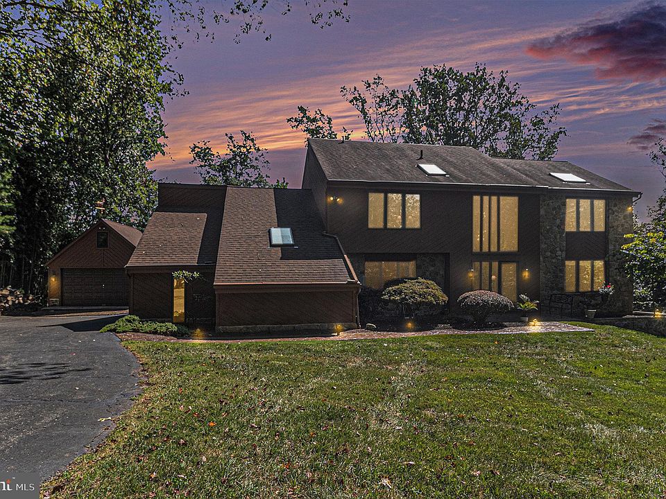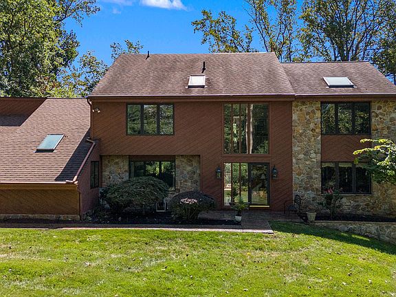 If you’ve been dreaming of a home that feels like a private retreat yet keeps you close to everything, this is it! Tucked away on 1.85 acres at the end of a cul-de-sac in the heart of Glen Mills, this custom-built home, crafted by the builder for his own family, offers an estate-like setting with privacy, elegance, and charm. From the moment you drive up the gorgeous tree-lined driveway, you’ll know you’ve arrived at your very own oasis. Meander down the stamped concrete walkway and through the front door, and you’re welcomed into a soaring two-story foyer framed by a dramatic glass wall—a grand first impression that sets this home apart from the rest. The main level is designed for both comfort and entertaining. Walk through your bright, spacious living room and you will find tucked in the back, a private office (or 1st flr bedroom) with vaulted ceiling and skylight, while a gracious dining room is perfect for gatherings. You will enjoy cooking in your chef’s kitchen featuring granite countertops, cherrywood custom cabinetry, a built-in butcher block, and stainless steel appliances. Just off the kitchen, the inviting family room features a stunning stone fireplace, the perfect spot to watch the snow fall on a winter evening. From both the kitchen and family room, sliding doors open to a huge composite deck spanning the entire back of the home, offering breathtaking views and the ideal space for outdoor living, whether you’re hosting friends or enjoying a quiet evening under the stars. Upstairs, the luxurious main suite offers vaulted ceilings with skylight, a walk-in closet, a beautifully remodeled spa-like bath, and French doors leading to your own private balcony—the perfect place for morning coffee surrounded by nature. Four additional spacious bedrooms, all freshly painted and carpeted, complete the second floor. The finished lower level provides even more living space, filled with natural light, a half bath, and multiple walkouts, making it perfect for a recreation room, gym, or guest space. Car enthusiasts and hobbyists will love the 2.5-car attached garage plus a detached 2.5-car carriage garage with a huge loft—offering endless options for storage, a workshop, or creative space. This rare find with incredible views from every window combines the peace of a private retreat with unmatched convenience—just minutes to shopping, dining, and easy access to I-95, Route 1, and 322.