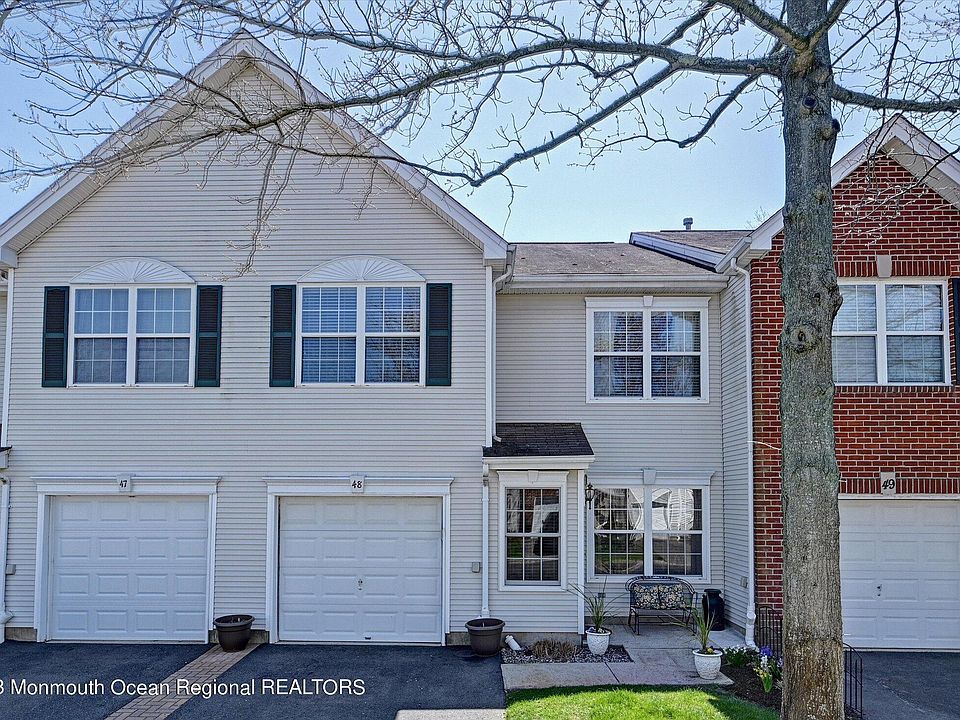 3 BR 2.5 BA townhome in sought after Country Village in Northern Howell Township. Features include spacious LR/DR combo w/newer laminate wood flooring, custom moldings & recessed lighting. 2 story FR w/gas FP & 2 story windows. Eat in kitchen w/custom white cabinetry, breakfast bar & dinette space w/slider to patio, granite counters & tiled backsplash. MBR w/vaulted ceiling, dble sink vanity, soaking tub & stall shower. 2 additional spacious bedrooms. This sundrenched home also features gated patio.