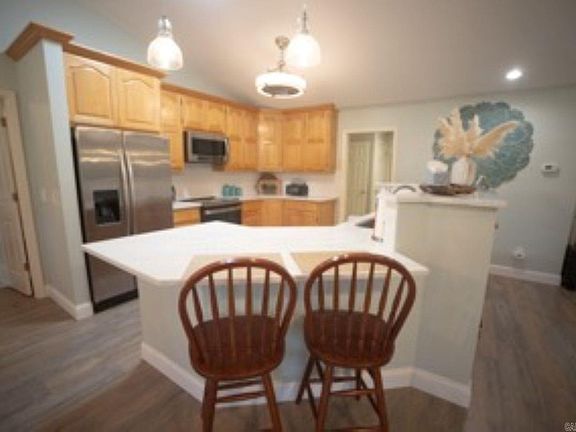 Nicely updated 3 Bedroom, 2.5 Bath Balboa Golf Course Retreat - Walk in and fall in love! Open concept with vaulted ceilings, wonderful floor plan that includes a sunroom. Great location on the 6th hole of the recently renovated Balboa Golf Course. Spacious 2.5 car garage for all your storage needs. Updates include new luxury vinyl plank flooring; new lighting; kitchen update that includes quartz countertops and appliances; interior painted throughout with all popcorn removed from ceilings; both full bathrooms remodeled; and NO carpet. Roof replaced in 2022; Heat Pump in 2019; two water heaters with one replaced in 2022. Great curb appeal with circular drive and cement walkway around house. Outside you'll find double decks and a concrete patio area for a firepit or chimenea. Whether a full time residence or a vacation retreat, this property checks off a lot of must haves. Furnishings available for sale separately. See Agent Remarks for additional details.