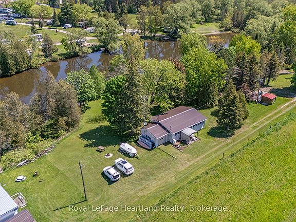 Escape to this charming 4-bedroom cottage nestled along the picturesque Saugeen River. Perfect for nature lovers and outdoor enthusiasts, this property offers serene waterfront living with its own private dock and boat access. Whether you're fishing, kayaking, or simply enjoying the tranquil views, this location promises relaxation and recreation.Located at the end of a quiet dead-end back road, you'll experience the peace and privacy of country living, all while being conveniently situated between the vibrant towns of Hanover and Walkerton. This prime location ensures you're never far from shopping, dining, and local attractions, making it ideal for weekend getaways or summer retreats.Inside, the cottage features a cozy layout, four bedrooms and a 3 pc bathroom perfect for family to gather & unwind. The open-concept living area leads out to a covered back porch and spacious yard, where you can soak in the natural beauty surrounding the property. An attached garage & over half an acre of land are just a few of the added features of this peaceful retreat. **this home is seasonal and is not winterized / useable in below freezing temperatures it is also located on a road that is not maintained in the winter months**
