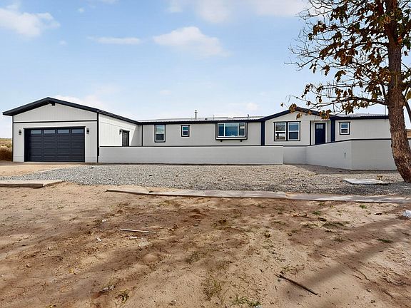 This beautifully remodeled 3-bedroom, 2 bath home offers modern comfort in a peaceful rural setting with spectacular views of the Jemez Mnts. Revel in the natural light that comes in through the 3 skylights. Enjoy a bonus room perfect for a home office or hobby space. Recent upgrades include new windows, new blinds, new roof, new tile flooring with plush carpet in the bedrooms, new lighting, and a new furnace and refrigerated air unit and new hot water heater. The kitchen has been thoughtfully redesigned with custom cabinetry, granite countertops and a new stainless appliance package.