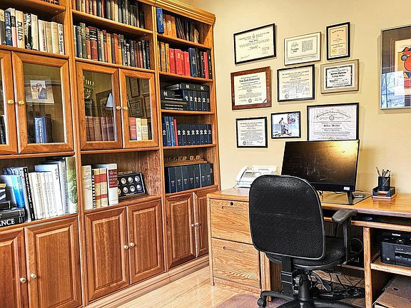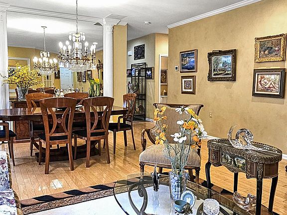 This meticulously maintained Deerfield model, owned by the original owner, offers a beautifully unique living experience. A highlight of this one-level home is the striking design in the dining room, where half-columns on either side of the wall, along with a mirror placed between, create an open and expansive feeling. The family room features a stunning built-in wall unit that spans the entire length of the room. This permanent feature offers plenty of shelving for displaying artwork and personal treasures, along with space for your TV and additional storage. It’s a custom addition that enhances both the functionality and style of the room, creating a cozy and organized space. The kitchen features an island and dark granite countertops, providing ample space for meal prep and casual dining. The layout includes two spacious bedrooms, plus a den—enhanced with elegant French doors as a builder upgrade—that can be used as an office or a cozy retreat, and two full bathrooms. The primary bedroom includes two walk-in closets, offering plenty of storage. Hardwood floors run through the dining and living areas as well as the den, while the bedrooms and family room are carpeted for comfort. Ceramic tiles in the kitchen, laundry, and bathrooms combine style with ease of upkeep. The primary bathroom is functional with a double sink, a Jacuzzi tub, and a walk-in shower—ideal for relaxing. The Deerfield model is well-loved for its den, providing extra living space, and its large pantry. The family room’s built-in wall unit provides extra storage, and the two-car garage ensures plenty of space for both vehicles and storage. Major updates offer peace of mind: the roof was replaced in 2023, the HVAC system is brand new (2024), and the hot water heater was updated in 2022. Step outside through the French doors in the family room to a beautiful deck, perfect for enjoying the outdoors. This home combines elegance, comfort, and luxury in a way that feels just right. Don't wait—come see this stunning home today and imagine yourself living here!