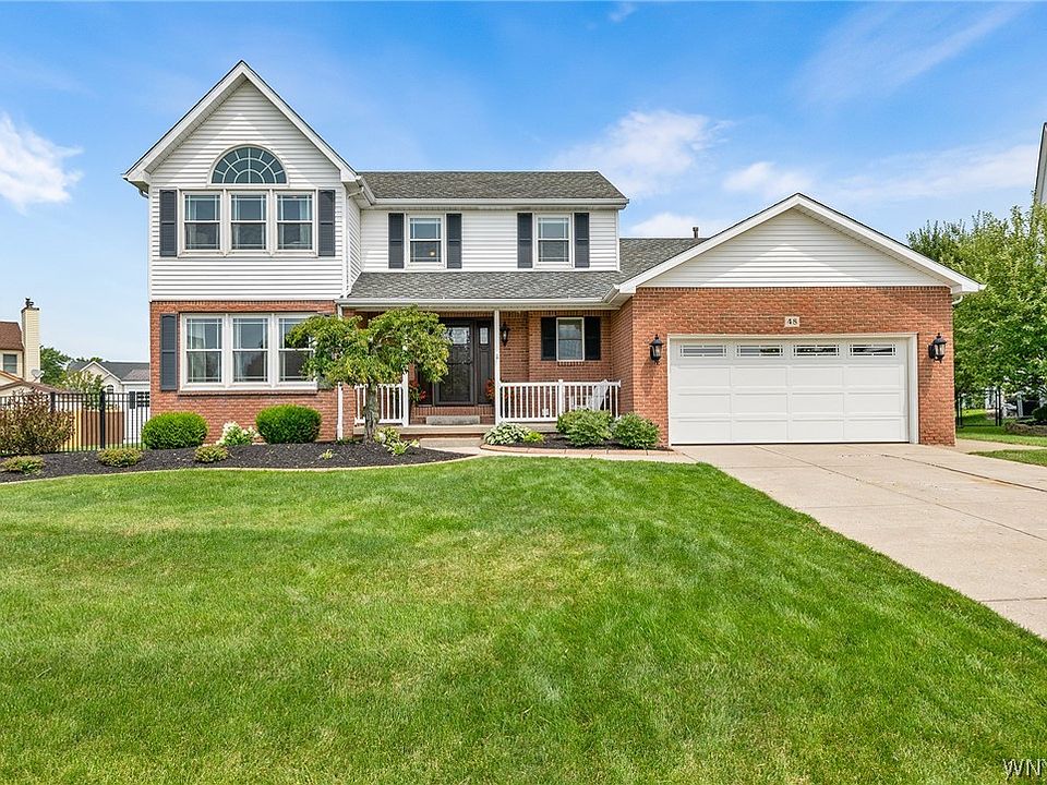 Welcome to this spacious 3 bedroom, 2.5 bathroom home in West Seneca, NY, where comfort meets convenience. Step into the large kitchen boasting an island that enhances both workspace and storage, ideal for culinary enthusiasts. The primary bedroom impresses with a full en-suite bathroom and a cathedral ceiling, providing a sense of openness and luxury. Enjoy the warmth of the gas fireplace in the inviting family room, complemented by another cathedral ceiling, creating a perfect space for relaxation and gatherings. The main level offers added practicality with a powder room and convenient laundry facilities. Downstairs, a partially finished basement expands the living space possibilities. Outside, a fully fenced yard ensures privacy and security, while a 2 car attached garage adds convenience. Located in the Orchard Park School District. This home blends functionality with style, offering a desirable living experience in a sought-after neighborhood. Delayed negotiations 8/2 at 3pm.