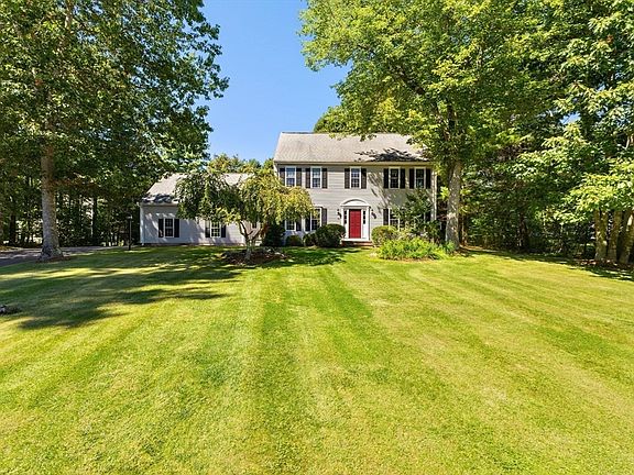 *** OFFERS DUE 10/1 BY 5PM ***Meticulously maintained Colonial situated on over an acre in a well sought out neighborhood. Open floor plan makes entertaining a breeze. The sun-filled kitchen with newer stainless steel appliances features a large pantry closet and a center island with seating. Make your way through the kitchen to the dining area with a slider that opens to a large outdoor patio with fire pit and spacious private backyard. The cozy living room just off the dining area includes hardwood floors and a gas fireplace perfect for chilly winter nights. A full bath with laundry area is also located on the first floor. Walk up to the second floor and you find the oversized master bedroom with a generous walk-in closet and built-in vanity with direct access to the second floor full bathroom. Three additional bedrooms and a hallway linen closet complete the second floor. So many extras-full unfinished basement w/bulk head and a two car garage, central AC