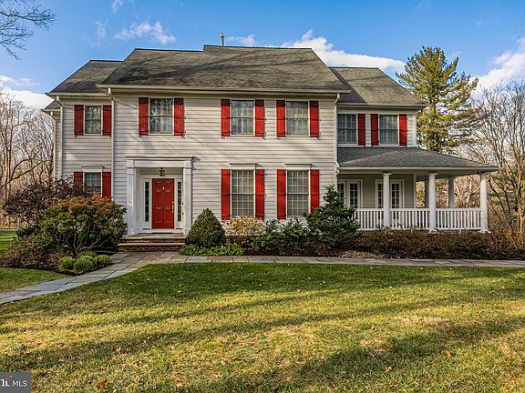 Sparkling new renovations to the open kitchen and palatial primary bathroom designed by Bruce Norman Long, among other expertly completed improvements, elevate this Littlebrook home to showplace standards. The floor plan, complete with a fully finished basement, handles a modern lifestyle with aplomb, yet detailed millwork, multiple French doors and warm finishing touches establish a traditional aesthetic that never falls out of style. Whether you enter through the gracious foyer or the freshly tiled side entry off the three-car garage, a handy powder room is ready and waiting. Pro-level Wolf appliances, seamless slabs of marble and white shaker cabinetry - custom-built with all the bells and whistles - will serve the home chef in classic style for years to come, while a built-in, mahogany-topped breakfast nook is a cozy spot with an open view into the family room. A gas fireplace and floor-to-ceiling built-ins ground this large gathering space, while the living room is sized for more intimate conversation. In addition to a handsomely outfitted office, four upper bedrooms offer comfort and quietude amid high-end details, like bespoke window treatments and designer lighting. Two share a pristine new bathroom, and the new primary bath is a true luxury retreat with a heated marble floor, soaking tub and glimmering fixtures. Custom walk-in closets, substantial built-ins and an upstairs laundry room keep everything beautifully organized. With a kitchenette, half bath and exercise studio, the lower level is ready for anything, while untapped space above the garage will easily serve any unmet need. Perhaps the best part: Littlebrook Elementary School is only 6/10 of a mile away and downtown Princeton is just over a mile. Shutters are currently red; black shutters shown for illustrative purposes.