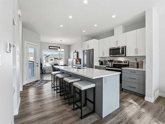 Beautiful townhouse in the desired community of Evergreen ~ This incredibly well maintained townhouse features an open concept layout with tons of natural light, quartz countertops throughout and a detached HEATED garage. The main floor showcases 9ft ceilings, an oversized 9ft island with ample seating, a stainless steel appliance package, soft close cabinets and pantry storage. From the dining room you can access the covered dura-deck and fully fenced and landscaped yard with a detached heated garage PLUS a rear concrete pad for additional parking unlike most units. This unique layout offers three bedrooms located in the basement including the large primary fit for King size furniture with a 4pc ensuite & walk-in closet. Two more bedrooms, a 4pc family and the conveniently located laundry complete this level. These efficient properties feature triple pane windows, 80 gallon HWT's, zero scaping in the front, H/E furnace and more. Evergreen is a beautiful community and 48 Evergreen Way awaits new ownership!